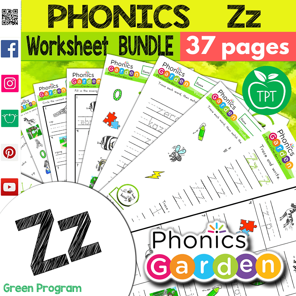 Zz | Phonics | Spelling | Vocabulary | GREEN | 37 Pages